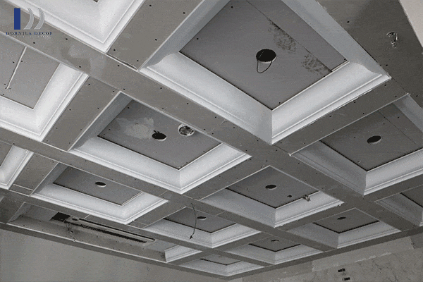 یکی دیگر از مدلهای ابزار گچبری سقف اتاق خواب جدید یا گچبری سقف پذیرایی مستطیل یا مربع مدل گچبری سقف شطرنجی است که با ابزار پلییورتان درنیکا به زیبایی قابل اجرا بر روی گچ یا کناف میباشد.