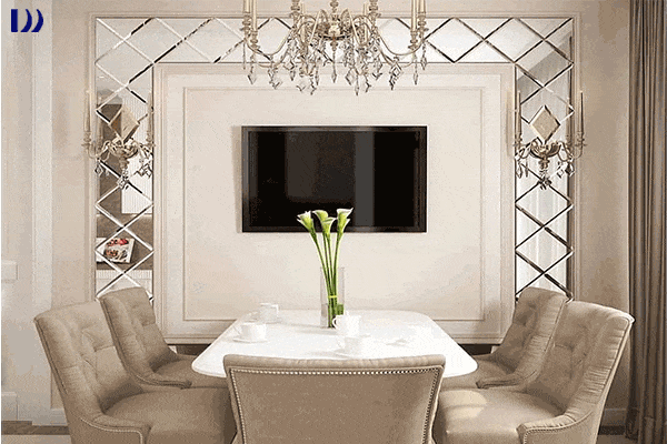 می توانید قاب بندی فضای ناهارخوری را با آیینه ترکیب کنید و فضایی بزرگتر داشته باشید.